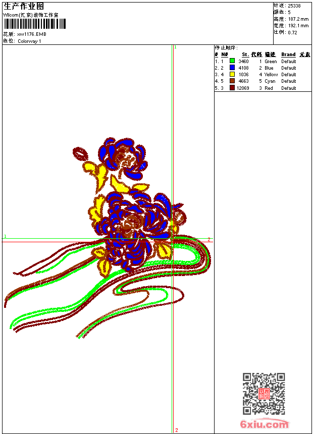 - emb花版参数: 大小:129.50 KB / 尺寸:192*187[毫米] / 针数:25338针 / 线色:5 / 格式:emb / 版本:9