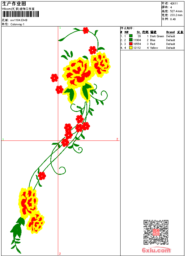 - emb花版参数: 大小:171.50 KB / 尺寸:233*527[毫米] / 针数:42612针 / 线色:4 / 格式:emb / 版本:9