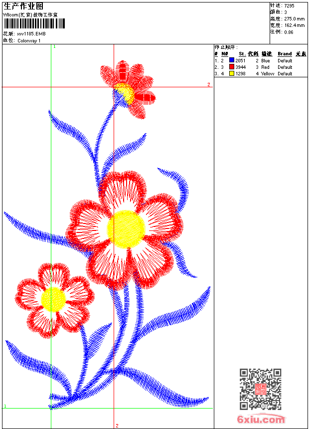 - emb花版参数: 大小:42.50 KB / 尺寸:162*275[毫米] / 针数:7295针 / 线色:3 / 格式:emb / 版本:9