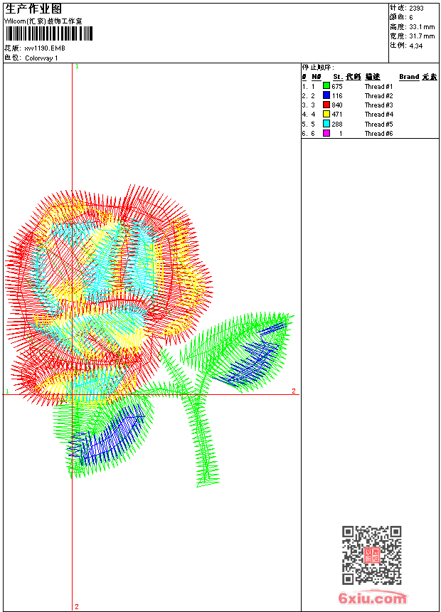 - emb花版参数: 大小:31.00 KB / 尺寸:32*33[毫米] / 针数:2393针 / 线色:6 / 格式:emb / 版本:9
