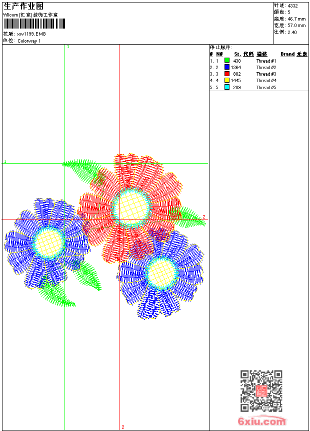 - emb花版参数: 大小:34.50 KB / 尺寸:57*47[毫米] / 针数:4332针 / 线色:5 / 格式:emb / 版本:9