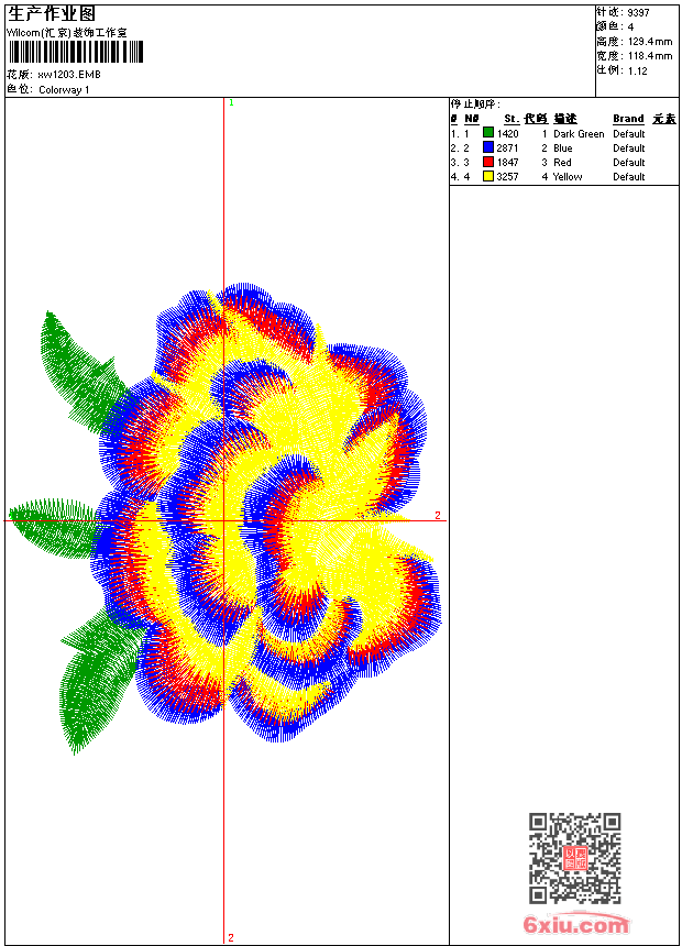 - emb花版参数: 大小:54.50 KB / 尺寸:118*129[毫米] / 针数:9398针 / 线色:4 / 格式:emb / 版本:9