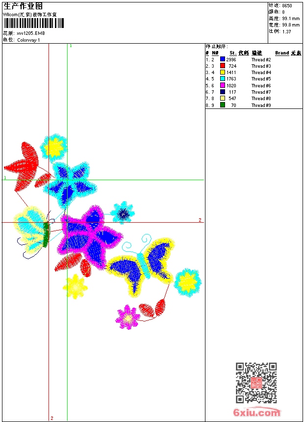 - emb花版参数: 大小:52.00 KB / 尺寸:100*99[毫米] / 针数:8650针 / 线色:8 / 格式:emb / 版本:9