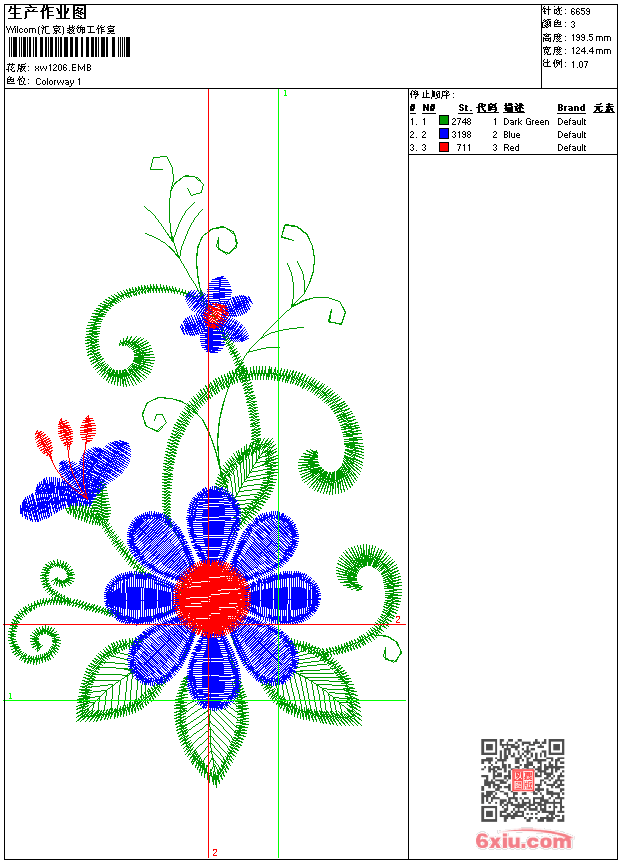 - emb花版参数: 大小:43.00 KB / 尺寸:124*200[毫米] / 针数:6659针 / 线色:3 / 格式:emb / 版本:9