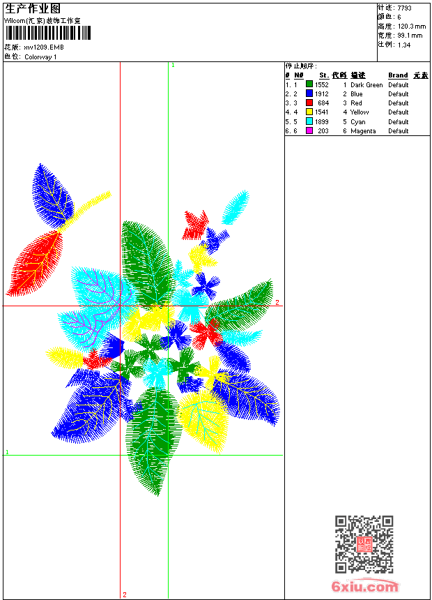 - emb花版参数: 大小:51.50 KB / 尺寸:99*120[毫米] / 针数:7793针 / 线色:6 / 格式:emb / 版本:9