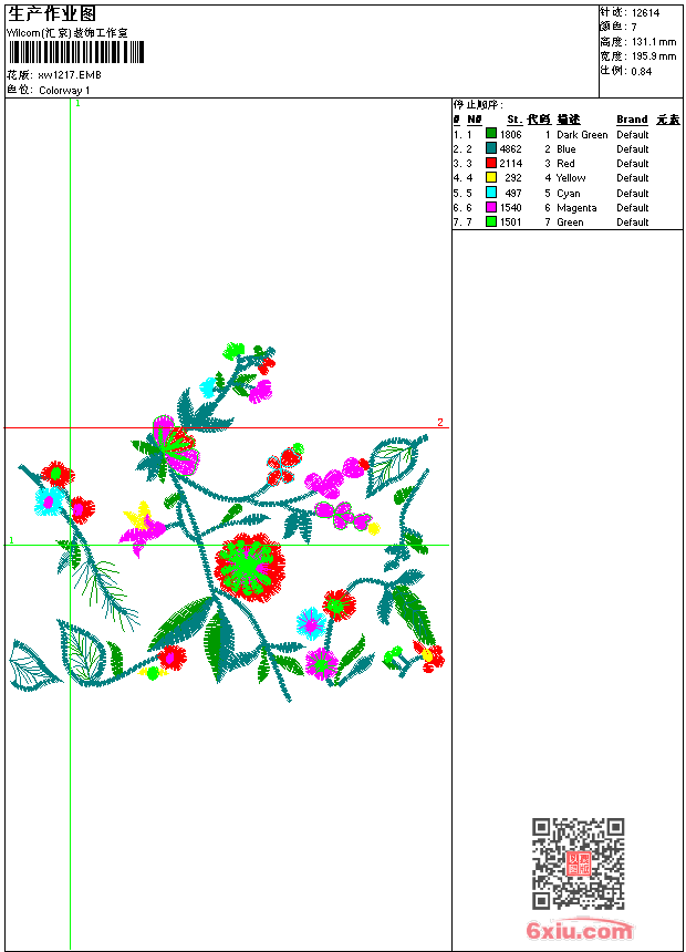 - emb花版参数: 大小:81.00 KB / 尺寸:196*131[毫米] / 针数:12627针 / 线色:7 / 格式:emb / 版本:9