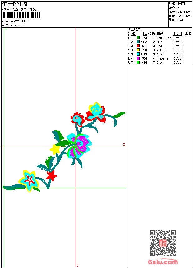 - emb花版参数: 大小:89.50 KB / 尺寸:326*240[毫米] / 针数:20176针 / 线色:7 / 格式:emb / 版本:9