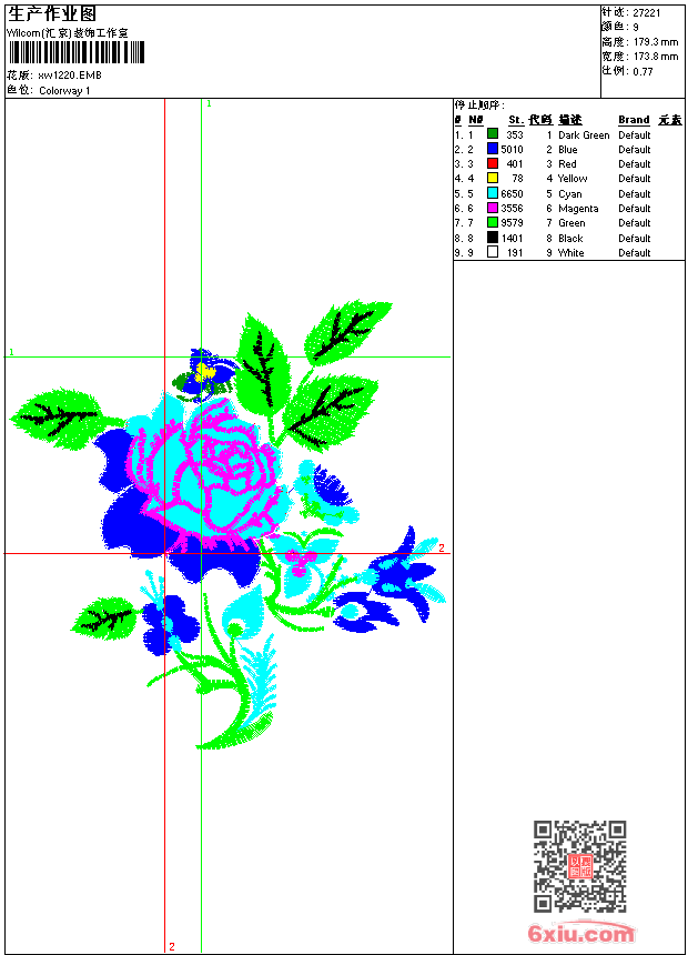 - emb花版参数: 大小:130.50 KB / 尺寸:174*179[毫米] / 针数:27221针 / 线色:9 / 格式:emb / 版本:9