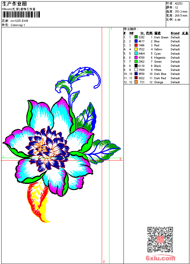 - emb花版参数: 大小:183.50 KB / 尺寸:270*353[毫米] / 针数:43254针 / 线色:12 / 格式:emb / 版本:9