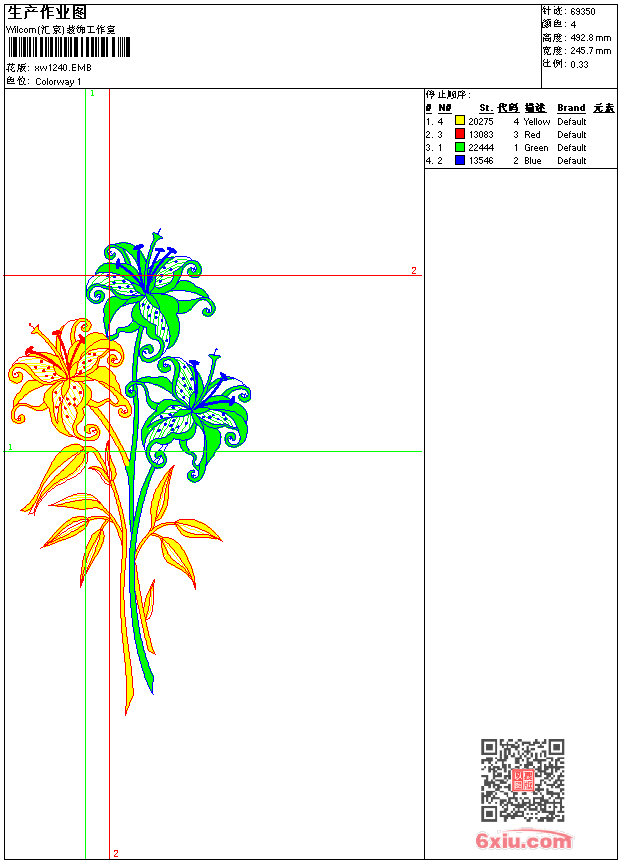 - emb花版参数: 大小:234.50 KB / 尺寸:246*493[毫米] / 针数:69350针 / 线色:4 / 格式:emb / 版本:9
