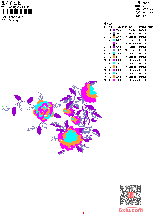 - emb花版参数: 大小:203.00 KB / 尺寸:524*387[毫米] / 针数:35663针 / 线色:5 / 格式:emb / 版本:9