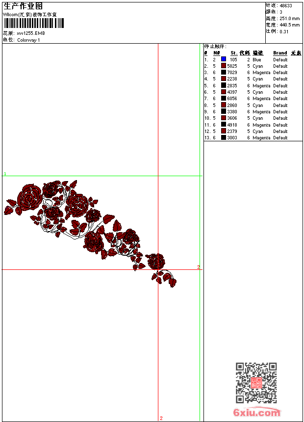 - emb花版参数: 大小:201.50 KB / 尺寸:441*251[毫米] / 针数:48633针 / 线色:3 / 格式:emb / 版本:9