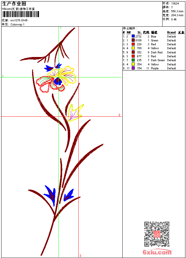 - emb花版参数: 大小:86.50 KB / 尺寸:204*558[毫米] / 针数:13624针 / 线色:7 / 格式:emb / 版本:9