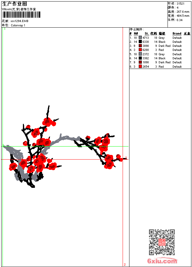 - emb花版参数: 大小:178.50 KB / 尺寸:404*268[毫米] / 针数:31521针 / 线色:4 / 格式:emb / 版本:9