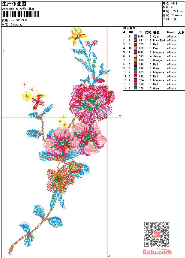 - emb花版参数: 大小:131.00 KB / 尺寸:72*155[毫米] / 针数:9789针 / 线色:8 / 格式:emb / 版本:9