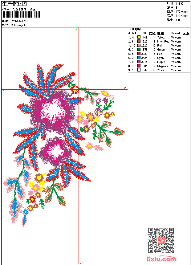 - emb花版参数: 大小:127.50 KB / 尺寸:132*175[毫米] / 针数:18692针 / 线色:9 / 格式:emb / 版本:9