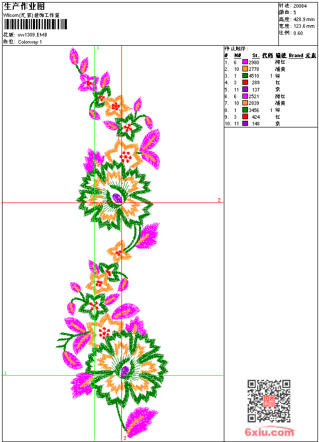 - emb花版参数: 大小:114.00 KB / 尺寸:124*429[毫米] / 针数:20084针 / 线色:5 / 格式:emb / 版本:9