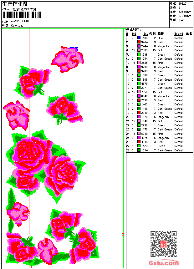 - emb花版参数: 大小:437.00 KB / 尺寸:271*536[毫米] / 针数:80920针 / 线色:6 / 格式:emb / 版本:9