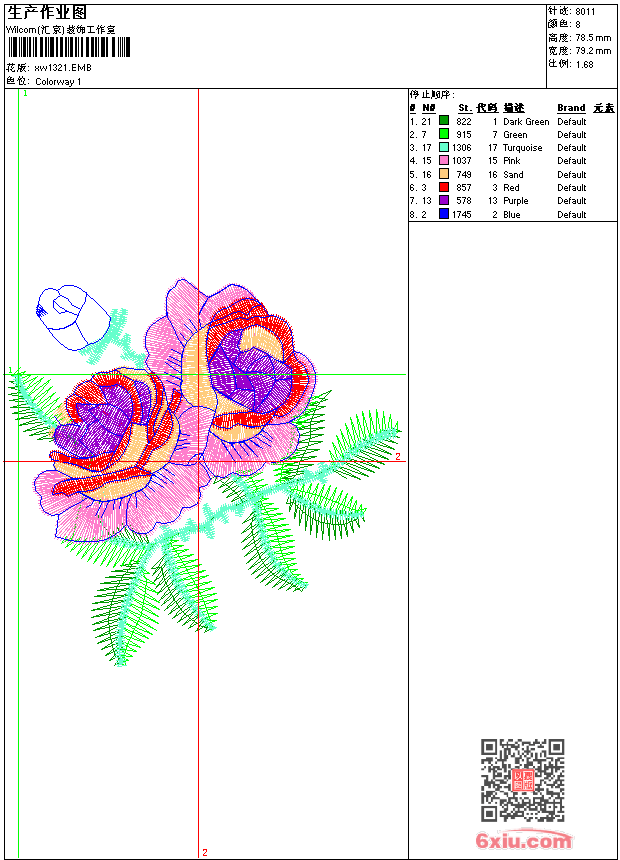 - 版带文件需绣花软件方可打开,可配色打印导出各种格式或直接上机绣。如无绣花软件可下载1:1模拟效果图。