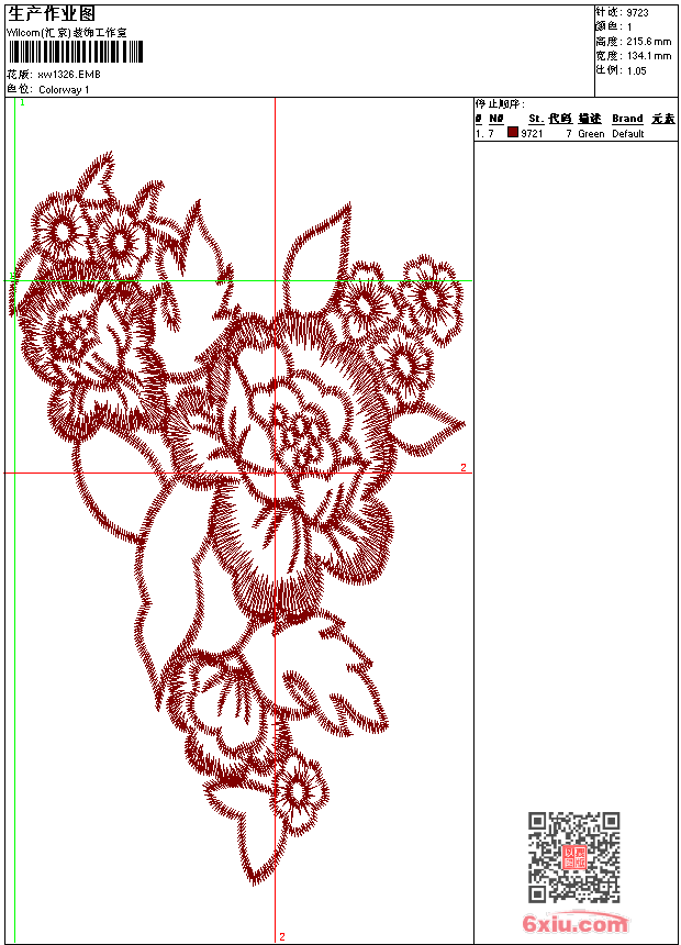- emb花版参数: 大小:89.50 KB / 尺寸:134*216[毫米] / 针数:9723针 / 线色:1 / 格式:emb / 版本:9