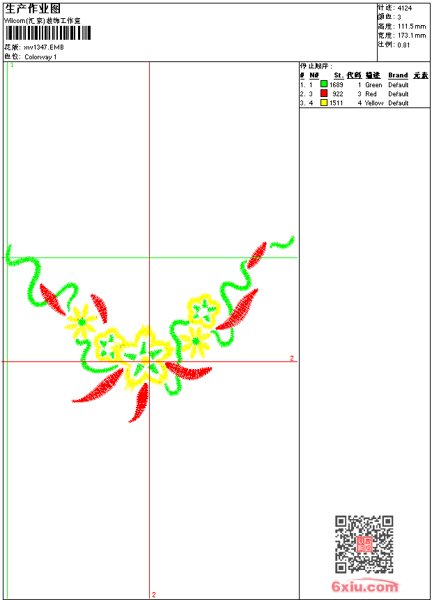 - emb花版参数: 大小:39.50 KB / 尺寸:173*112[毫米] / 针数:4124针 / 线色:3 / 格式:emb / 版本:9
