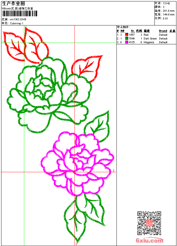- 版带文件需绣花软件方可打开,可配色打印导出各种格式或直接上机绣。如无绣花软件可下载1:1模拟效果图。
