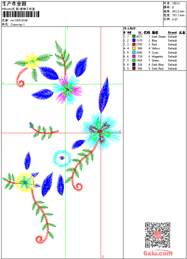 - emb花版参数: 大小:61.00 KB / 尺寸:153*263[毫米] / 针数:15513针 / 线色:9 / 格式:emb / 版本:9