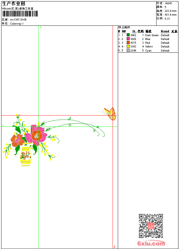 - 版带文件需绣花软件方可打开,可配色打印导出各种格式或直接上机绣。如无绣花软件可下载1:1模拟效果图。