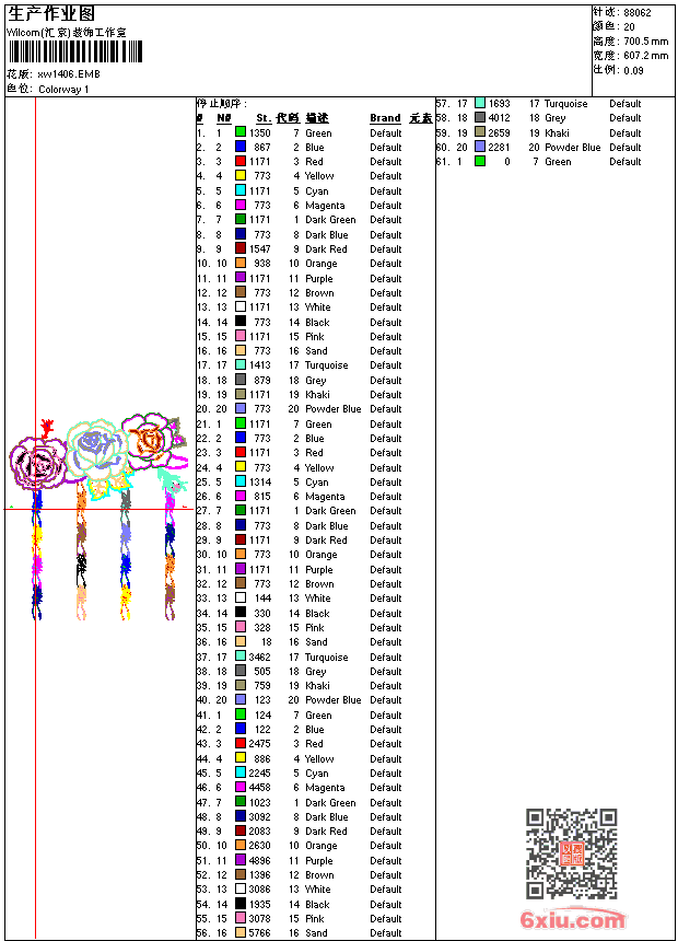 - emb花版参数: 大小:216.50 KB / 尺寸:607*701[毫米] / 针数:88062针 / 线色:20 / 格式:emb / 版本:9