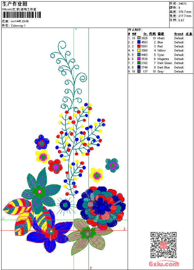- emb花版参数: 大小:200.00 KB / 尺寸:218*379[毫米] / 针数:34673针 / 线色:9 / 格式:emb / 版本:9