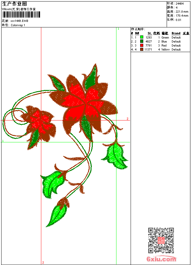- emb花版参数: 大小:119.00 KB / 尺寸:170*222[毫米] / 针数:24484针 / 线色:4 / 格式:emb / 版本:9