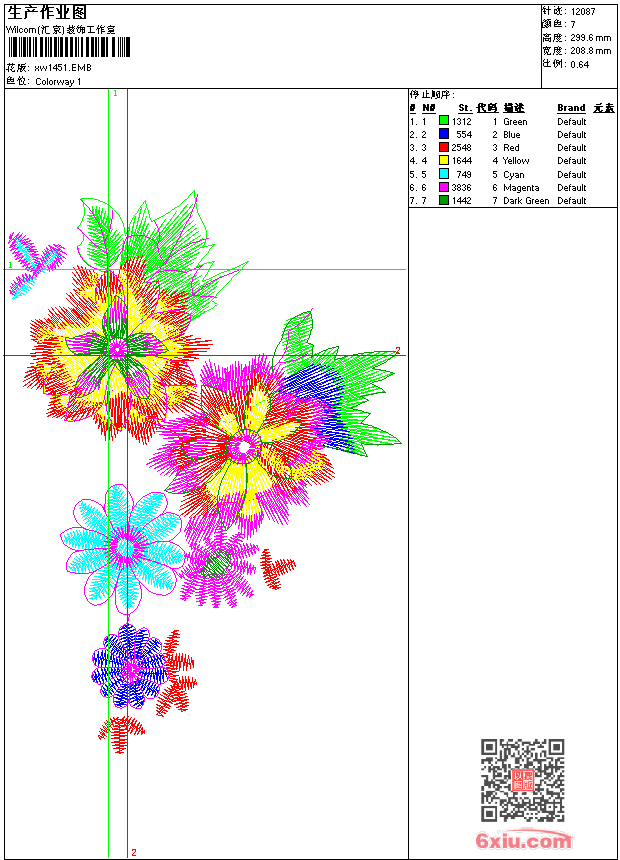 - emb花版参数: 大小:47.50 KB / 尺寸:209*300[毫米] / 针数:12087针 / 线色:7 / 格式:emb / 版本:9