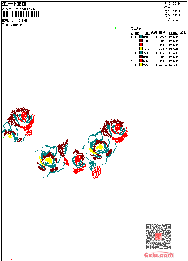 - emb花版参数: 大小:106.00 KB / 尺寸:516*293[毫米] / 针数:50190针 / 线色:4 / 格式:emb / 版本:9