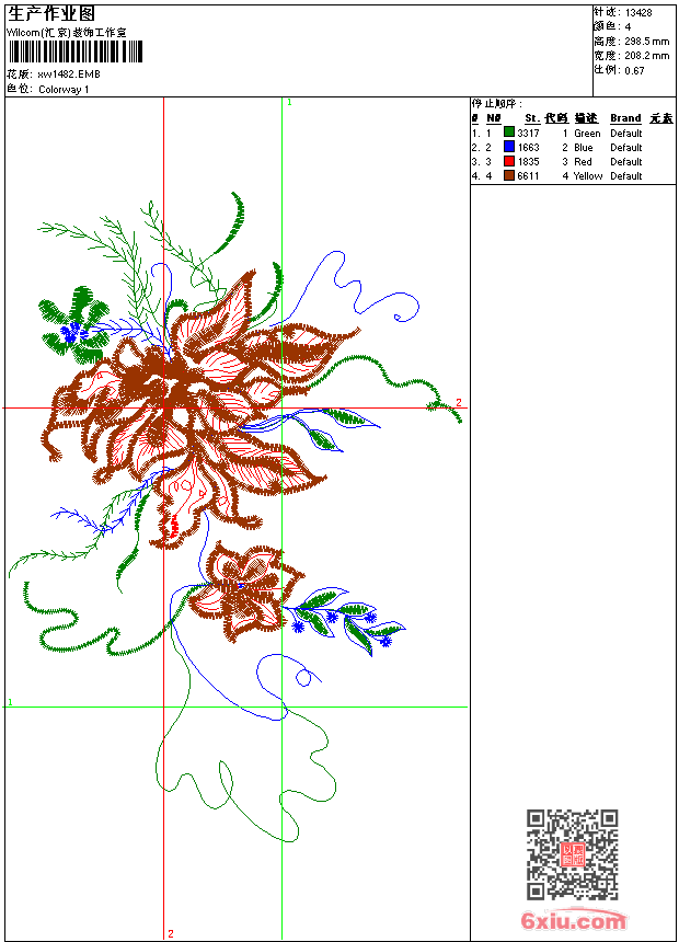 - 版带文件需绣花软件方可打开,可配色打印导出各种格式或直接上机绣。如无绣花软件可下载1:1模拟效果图。