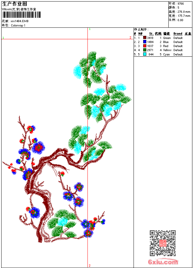 - emb花版参数: 大小:94.50 KB / 尺寸:176*277[毫米] / 针数:9764针 / 线色:5 / 格式:emb / 版本:9