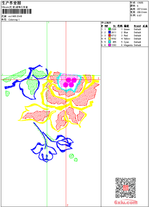 - emb花版参数: 大小:70.50 KB / 尺寸:206*208[毫米] / 针数:17655针 / 线色:6 / 格式:emb / 版本:9