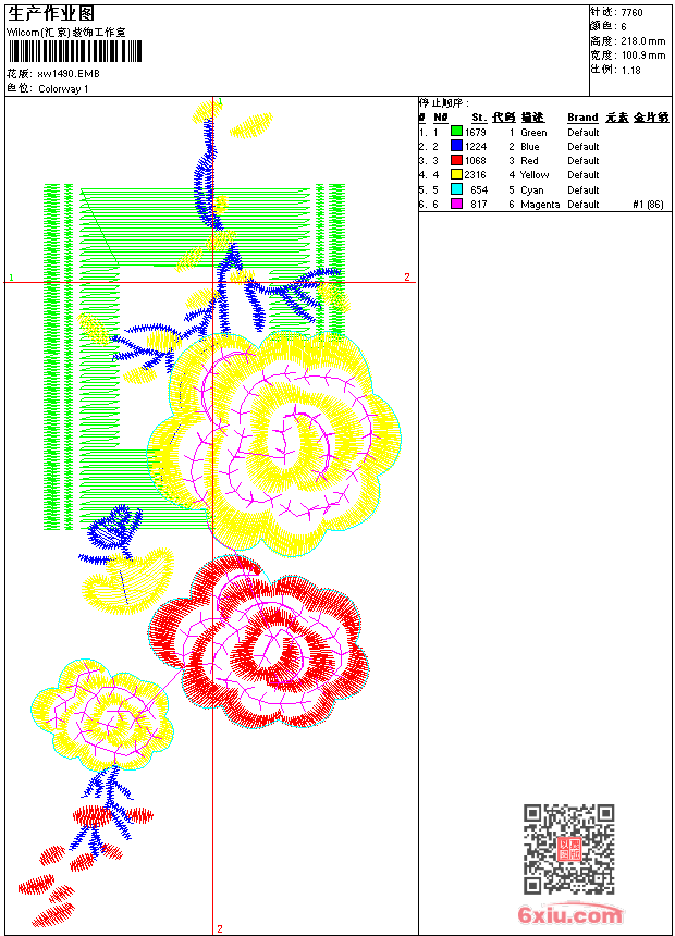- emb花版参数: 大小:61.50 KB / 尺寸:101*218[毫米] / 针数:7760针 / 线色:6 / 格式:emb / 版本:9