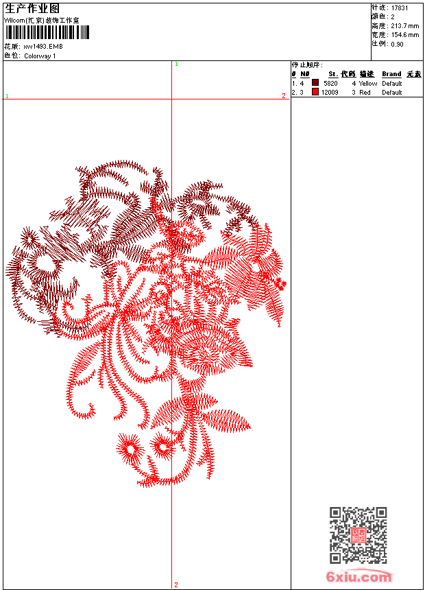 - emb花版参数: 大小:74.00 KB / 尺寸:155*214[毫米] / 针数:17831针 / 线色:2 / 格式:emb / 版本:9