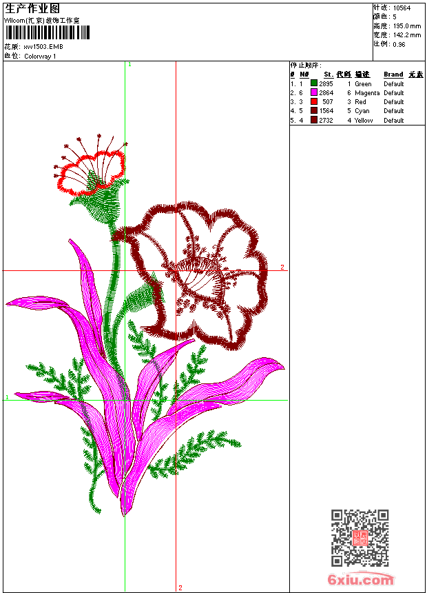 - emb花版参数: 大小:83.50 KB / 尺寸:142*195[毫米] / 针数:10564针 / 线色:5 / 格式:emb / 版本:9
