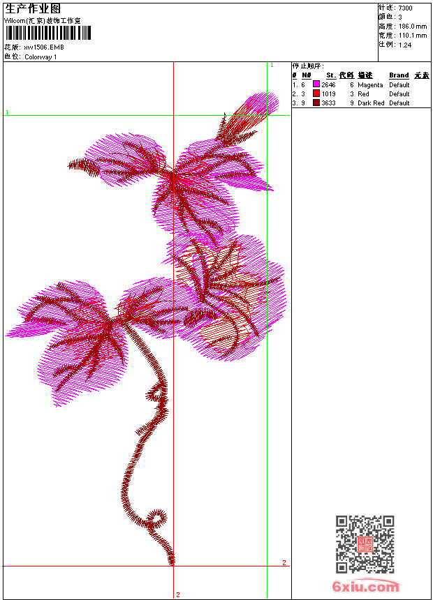 - emb花版参数: 大小:51.00 KB / 尺寸:110*186[毫米] / 针数:7300针 / 线色:3 / 格式:emb / 版本:9