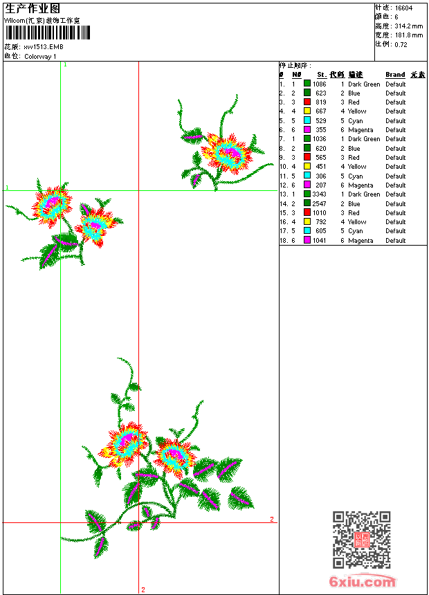 - 版带文件需绣花软件方可打开,可配色打印导出各种格式或直接上机绣。如无绣花软件可下载1:1模拟效果图。
