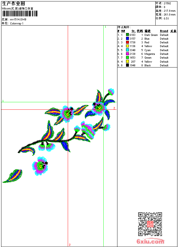 - emb花版参数: 大小:99.50 KB / 尺寸:261*218[毫米] / 针数:21502针 / 线色:8 / 格式:emb / 版本:9