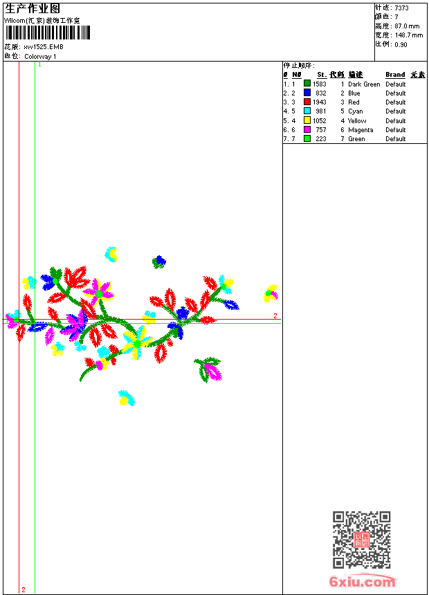 - emb花版参数: 大小:60.00 KB / 尺寸:149*87[毫米] / 针数:7373针 / 线色:7 / 格式:emb / 版本:9