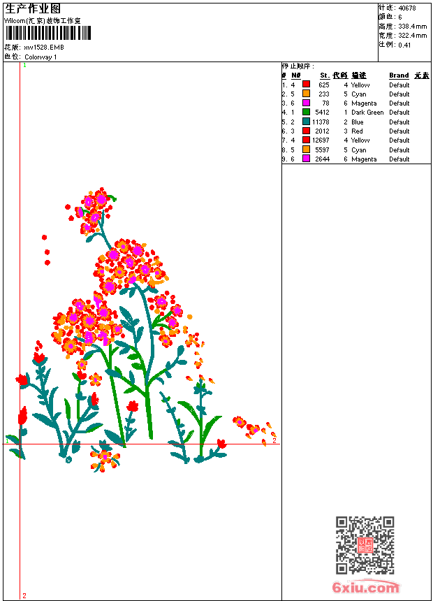 - emb花版参数: 大小:207.00 KB / 尺寸:322*338[毫米] / 针数:40678针 / 线色:6 / 格式:emb / 版本:9