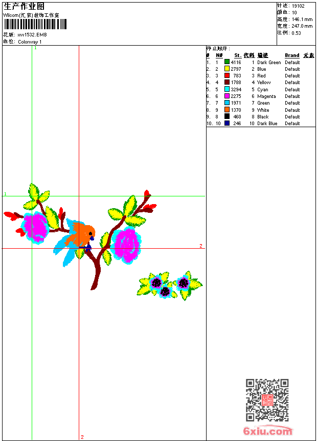 - 版带文件需绣花软件方可打开,可配色打印导出各种格式或直接上机绣。如无绣花软件可下载1:1模拟效果图。