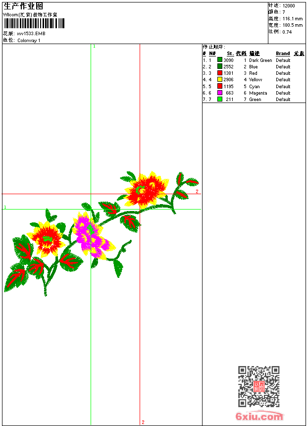 - emb花版参数: 大小:81.00 KB / 尺寸:180*116[毫米] / 针数:12000针 / 线色:7 / 格式:emb / 版本:9