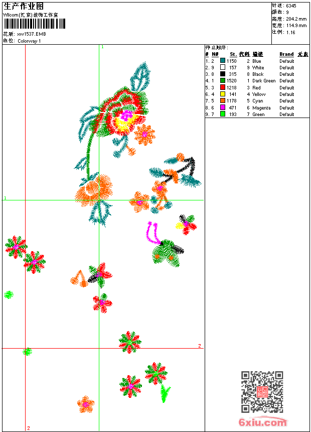 - emb花版参数: 大小:59.50 KB / 尺寸:115*204[毫米] / 针数:6345针 / 线色:9 / 格式:emb / 版本:9