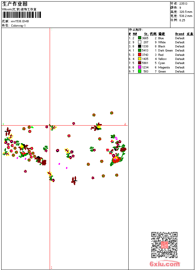 - emb花版参数: 大小:156.00 KB / 尺寸:538*321[毫米] / 针数:23513针 / 线色:9 / 格式:emb / 版本:9