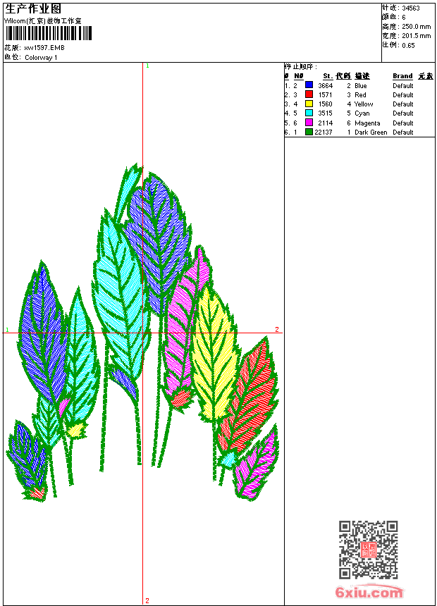 - emb花版参数: 大小:187.50 KB / 尺寸:202*250[毫米] / 针数:34563针 / 线色:6 / 格式:emb / 版本:9