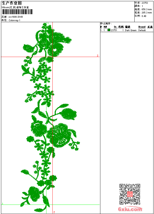 - emb花版参数: 大小:155.00 KB / 尺寸:205*650[毫米] / 针数:23753针 / 线色:1 / 格式:emb / 版本:9
